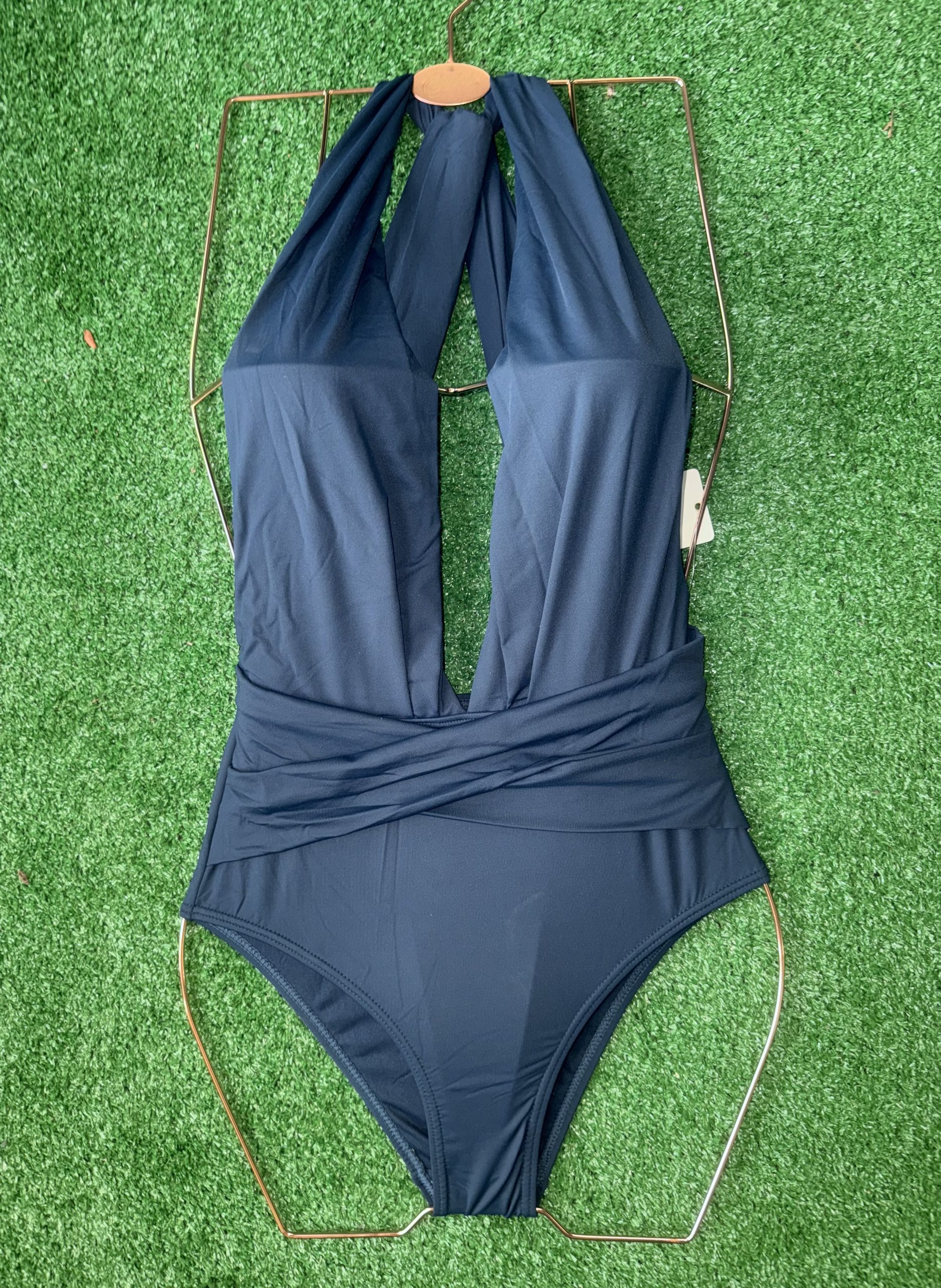 Este traje de baño de una sola pieza con espalda cruzada y frente integrado en color azul marino es la elección perfecta para quienes buscan combinar estilo, comodidad y una figura esbelta. Con su diseño cuidadosamente pensado y materiales de alta calidad, te sentirás segura y con estilo en cada momento, disfrutando de la combinación perfecta de confort, moda y un toque de elegancia clásica.